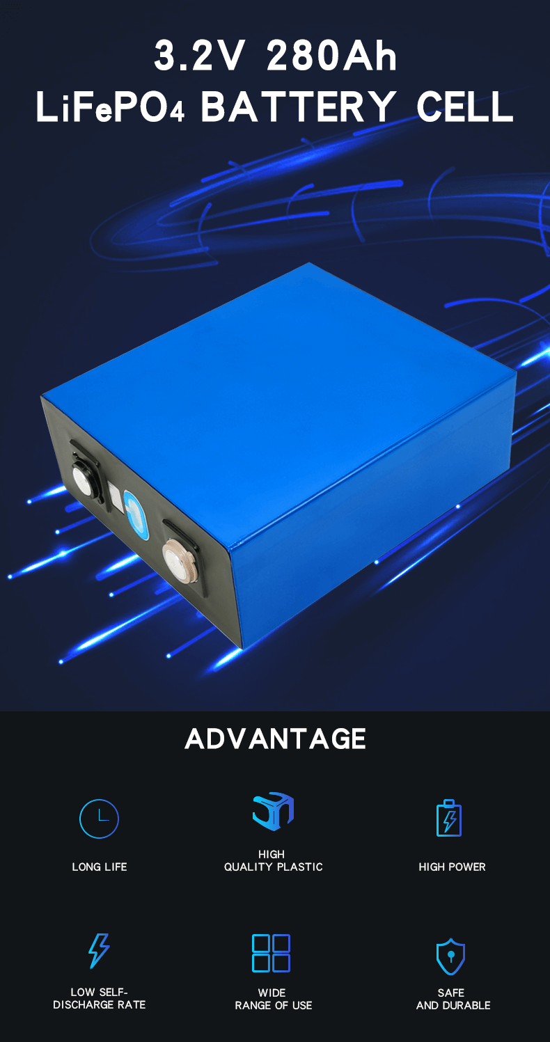 Sel baterai LiFePO4 3.2V 280Ah bersertifikat UL ini memiliki keunggulan sebagai berikut: