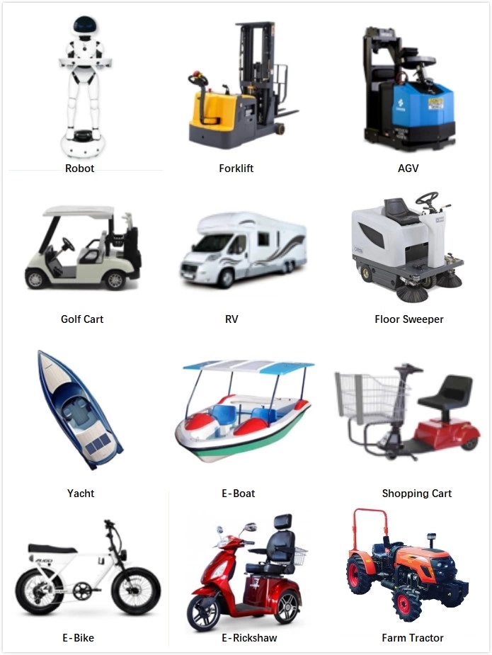 | aplikasi | Kereta Golf, Forklift Listrik, Mobil Kecepatan Lambat; AGV, Sepeda Motor Listrik; Mobil tamasya; RV, Roda Tiga, kendaraan listrik, Listrik Kursi Roda, Sistem Tenaga Listrik, Catu Daya Tak Terputus, Sistem Penyimpanan Energi Surya, PERAHU |