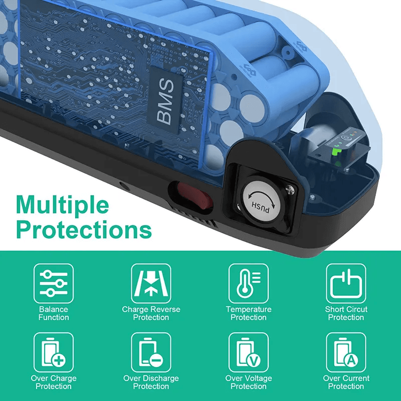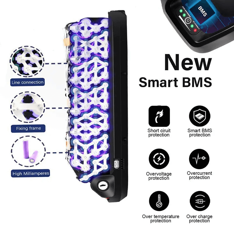 Papan sirkuit bagian dalam, memberikan perlindungan terhadap pengisian berlebih, pengosongan berlebih, dan korsleting, melalui pemantauan rangkaian sel tunggal. Juga memungkinkan setiap baterai untuk mendapatkan fungsi penyeimbangan independen