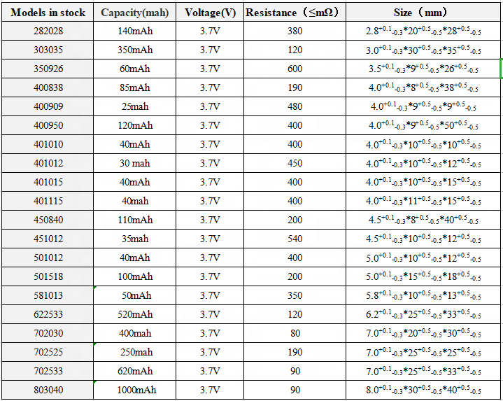 nama Produk | 581013 3.7V 50mAh baterai lithium polimer | Ucapan | |