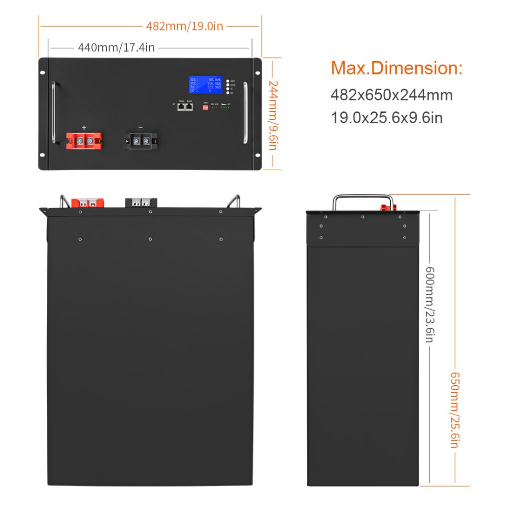 Mode Pengisian | Pada suhu 0 ~ 45 ℃, dibebankan ke 58.4V pada arus konstan 0,2C, dan kemudian, diubah terus menerus dengan tegangan konstan 58.4V hingga arus tidak lebih dari 0,02C | |