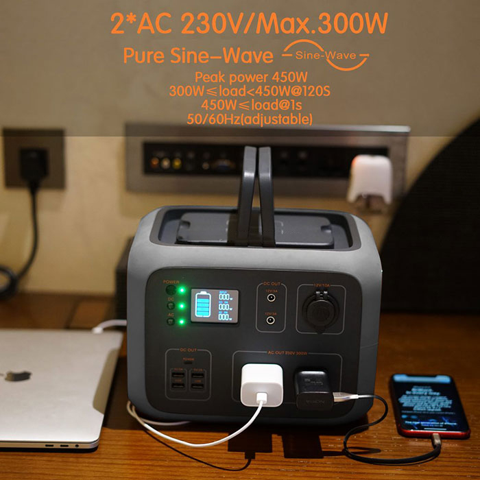500Wh Portable Generator Power Station Power Supply dengan Inverter DC / AC 300W yang Cukup, output DC / AC / USB untuk Perjalanan Berkemah Di Luar Ruangan
