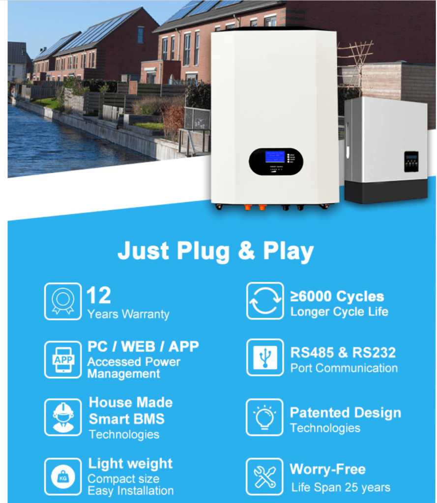 1. 51.2V 100Ah LFP100Ah-16S1P LiFePO4 Paket Baterai