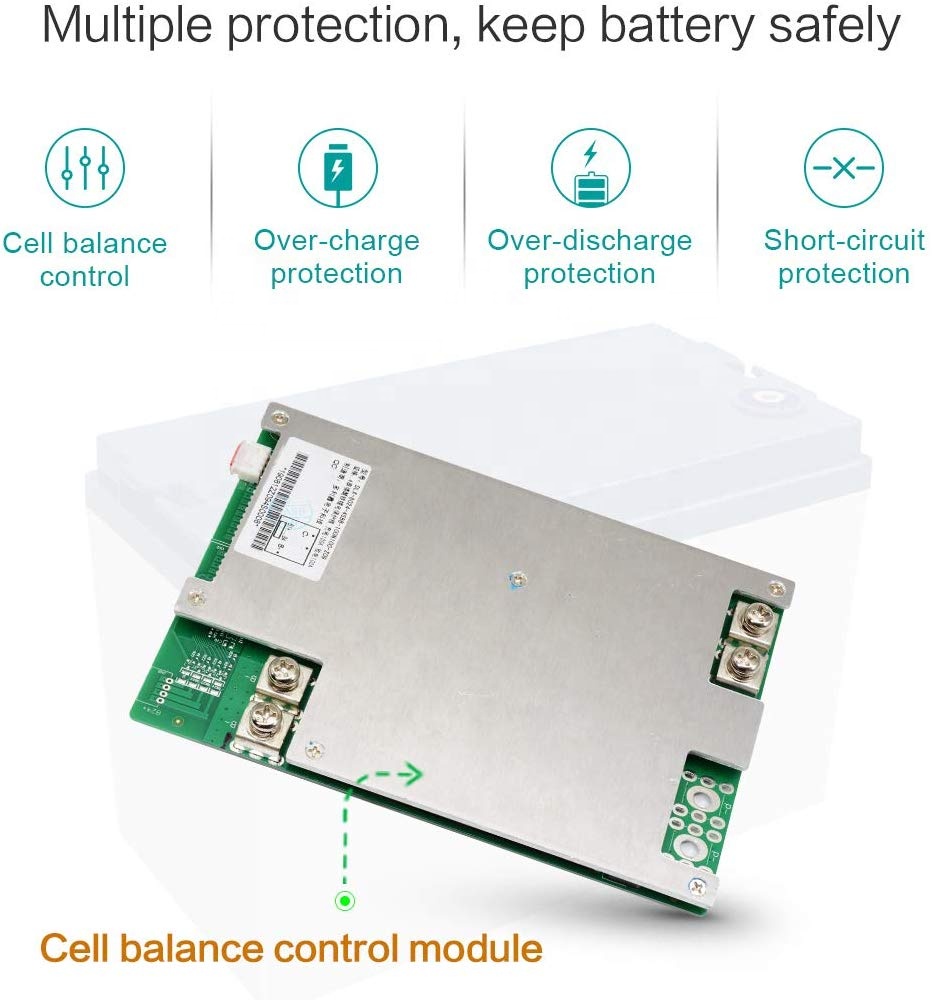 ◆ Proteksi otomatis bawaan untuk pengisian berlebih, pelepasan muatan berlebih, suhu berlebih dan suhu berlebih.