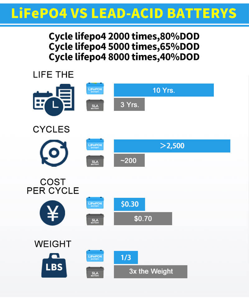 ♦ Berat Lebih Ringan: Sekitar 40% dari berat baterai asam timbal yang sebanding. Pengganti "drop in" untuk baterai asam timbal