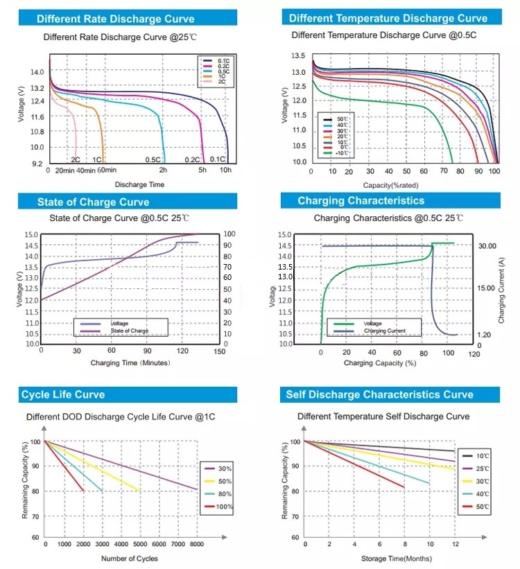 Tingkat konversi energi 15% lebih tinggi daripada baterai asam timbal tradisional, keuntungan penghematan energi jelas. Tingkat self-discharge < 2% per bulan.